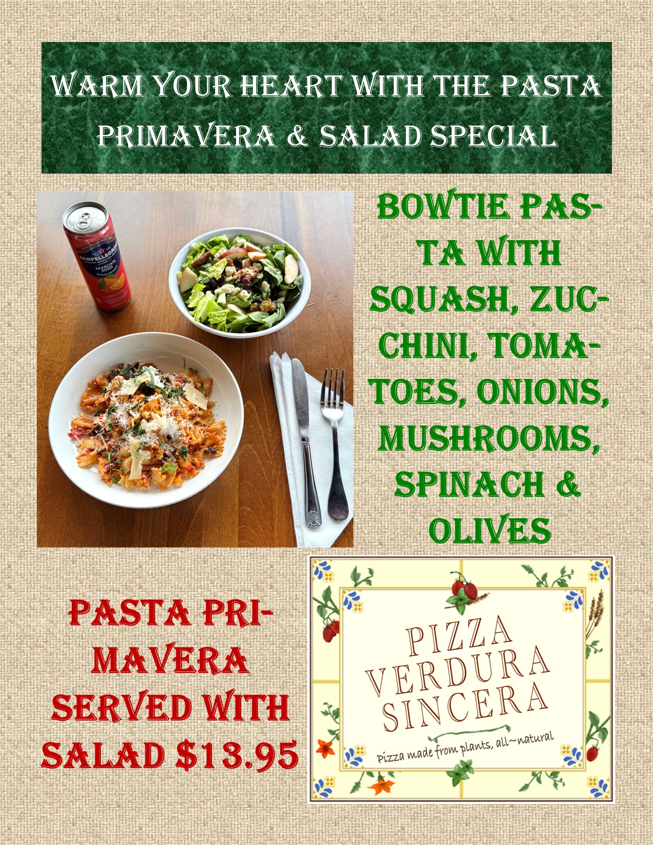 As a longtime vegan, I'm a bit of a vegan pizza snob. The pizza they serve at Pizza Verdura Sincera is out of this world! The crust - perfection. The sauce - perfection. The toppings and presentation - also perfection. I had the Messicano and highly recommend it! The atmosphere inside is chill and cozy, and the staff are incredibly kind and attentive.
